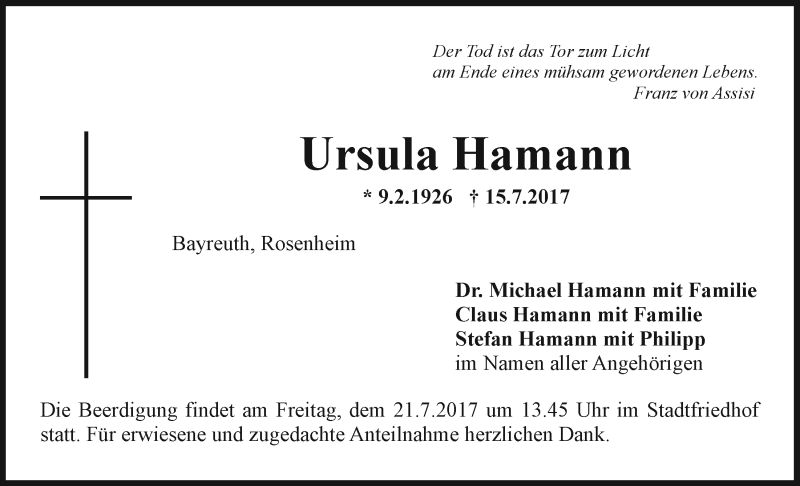 Hier finden Sie alle Traueranzeigen aus der Zeitung, die bisher für Ursula Hamann erschienen sind. Weitere Traueranzeigen, die in der Zeitung erscheinen, werden hier ebenfalls aufgelistet