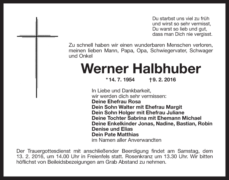 Hier finden Sie alle Traueranzeigen aus der Zeitung, die bisher für Werner Halbhuber erschienen sind. Weitere Traueranzeigen, die in der Zeitung erscheinen, werden hier ebenfalls aufgelistet